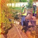 The owner of the land and the stones, Nationwide Realty Investors (NRI), agreed to transfer ownership of these artifacts to Columbus Landmarks. But we had to move them quickly – in the days before the land was transferred to the Legends development team – and these “stones” would be more aptly described as “boulders.” Brad DeHays of Connect Real Estate, who is rehabilitating the neighboring Municipal Light Plant, came to the rescue with his construction team and equipment to move the stones and store them while plans for their reuse are finalized. These stones are extra special in character, detail and history, and we hope they will be reused in a creative way so that the public can enjoy them and learn from them for another century.